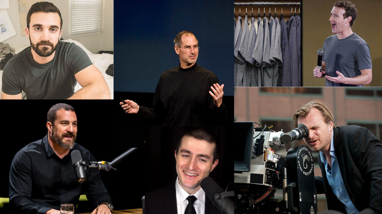 Steve Jobs, Mark Zuckerberg, Christopher Nolan, Andrew Huberman, Lex Fridman, and Matt D’Avella have one thing in common; they all wear the same thing most days. I’m starting to do the same, mostly out of decision fatigue. Before I realized, I started reaching for the same clothes every day, one outfit for home, and one outfit for outside. White T-shirt with black sweatpants at home, black long-sleeved T-shirt and black jeans for outside, maybe with a black cardigan if it’s cold. There’s hardly any thought that goes into choosing my outfit.